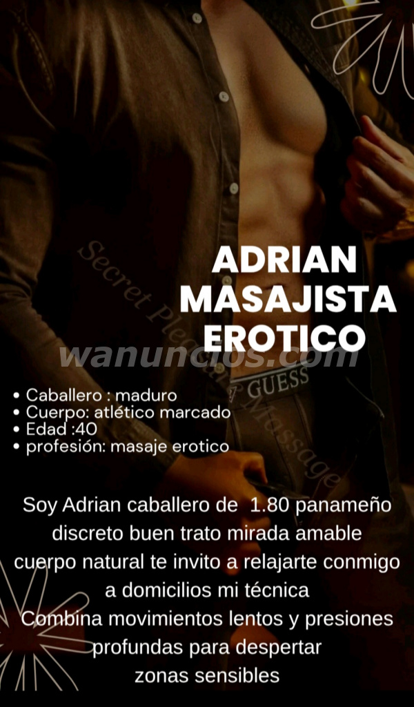 Soy Adrian chico maduro masajista tantrico nuru hetero discreto y profesional en el trato a mujeres y parejas 6767-9747 escríbeme y dejame saber que te gustaría realizar o que esperas de los masajes , servicio a domicilio masaje tantrico ,ducha erotica , estimulacion de zonas íntimas, final feliz si lo deseas escríbeme
