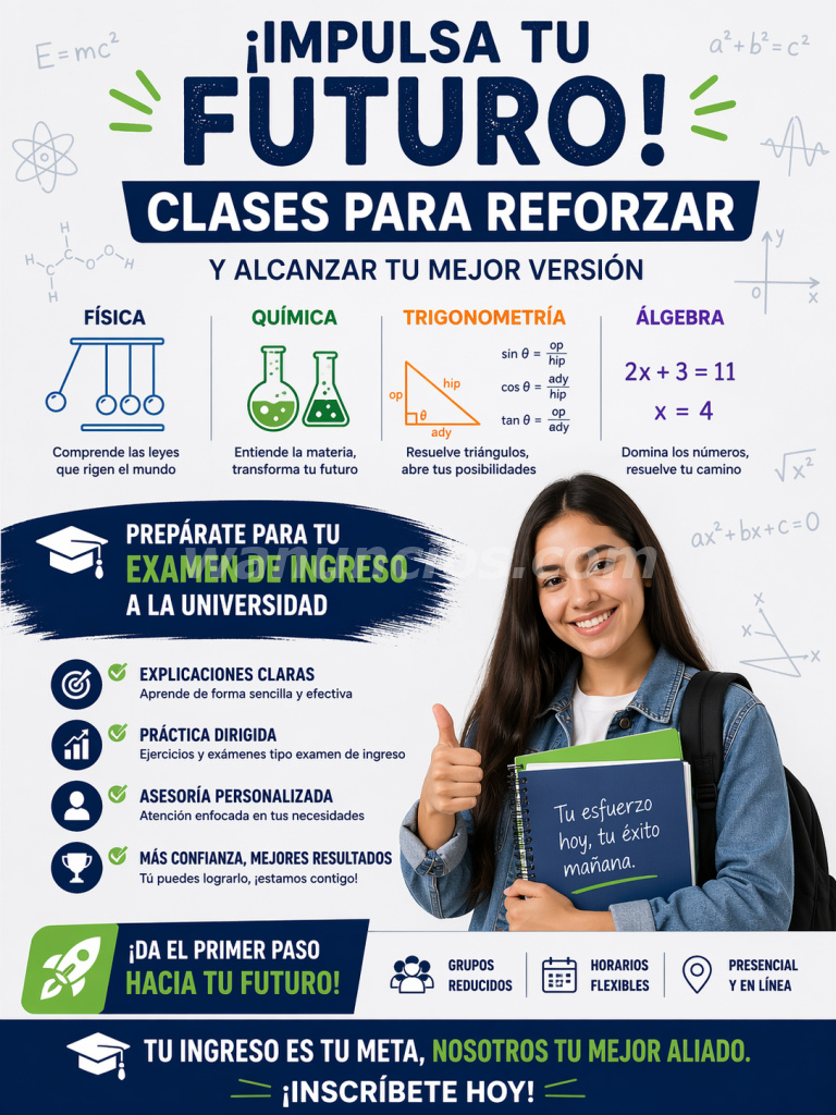 Se refuerzan materias de primaria y secundaria: Matemáticas, geometría,álgebra,calculo,física,quimica
