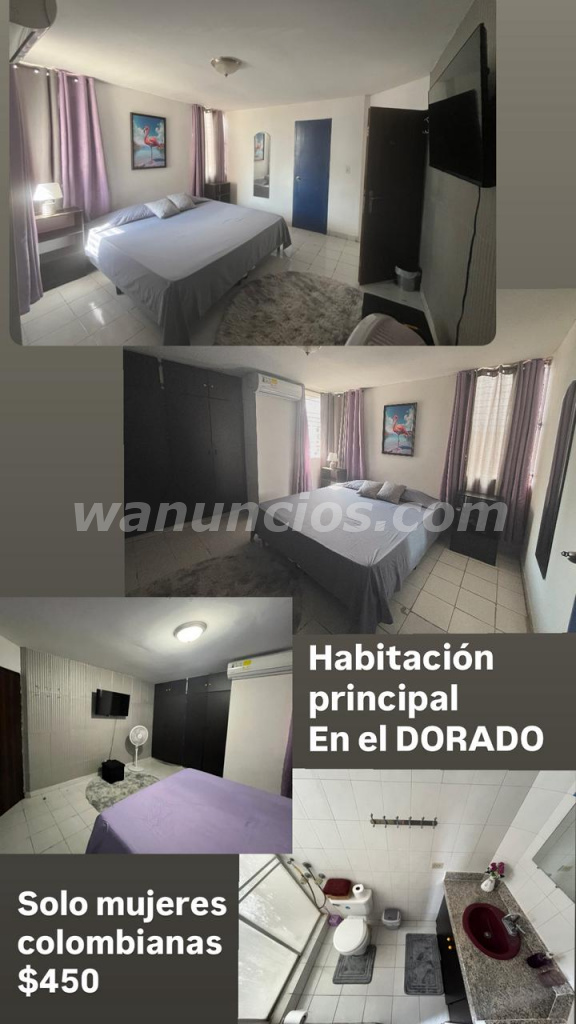 Se alquila habitación principal por mes solo a mujeres colombianas, tranquilas, aseadas y sin vicios. totalmente amoblada, cama king, tv, aire acondicionado, wifi, cocina, zona de lavanderia, la lavadora la puedes usar cualquier dia. Ph discreto sin conserje, con intercon, facil acceso y parking para las visitas. Apartamento tranquilo y super discreto en el DORADO, info 65008936