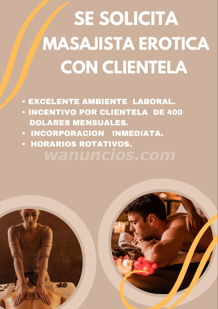 SE SOLICITA MASAJISTA EROTICA CON CLIENTELA (Panama)